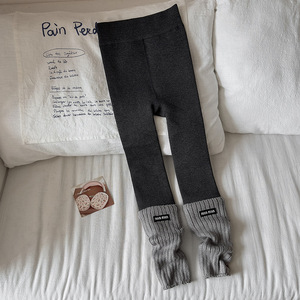 2025新款冬款韩版高腰竖条纹袜套拼接保暖九分裤子外穿连袜打底裤