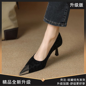 白枕鹤金属铁头豹纹细跟高跟鞋女春秋季新款小众设计感气质百搭浅