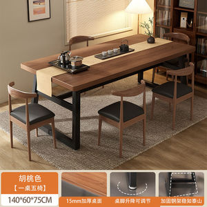 【升级加固款一桌六椅】胡桃色黑架140*60