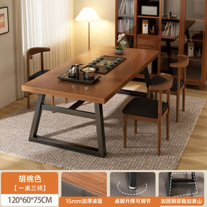 【升级加固款一桌三椅】胡桃色黑架120*60