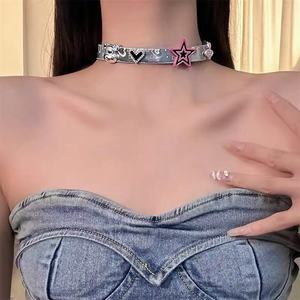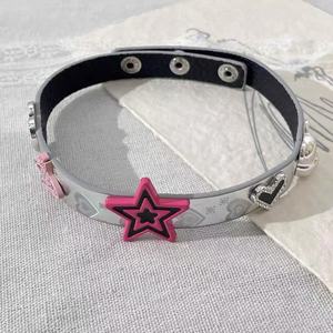 新款粉色五角星银色皮革项链项圈女甜酷个性颈带颈环choker颈链女