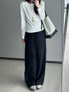 【梨形克星】秋季深蓝色牛仔裤阔腿百搭显瘦垂感舒适高腰休闲裤