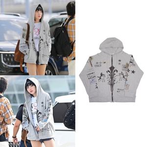 现货Jennie金智妮朴元彬同款韩国小众华夫格拉链连帽卫衣外套