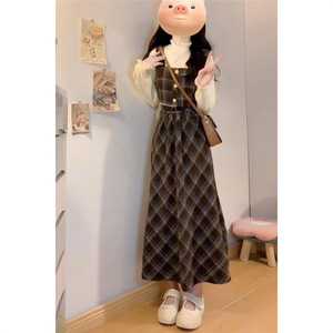 小香学院风格子背带连衣裙子女秋冬季2025新款小个子穿搭套装长裙