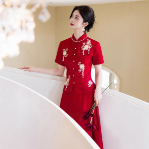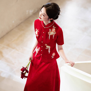 红色新中式旗袍敬酒服新娘2025新款订婚结婚礼服女高级感婚礼回门