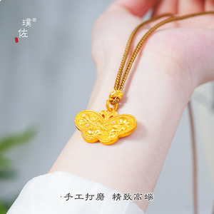 璞佐金店同款沙金diy配件镶钻浮绘翩蝶吊坠项链女精致复古锁骨链