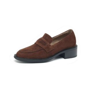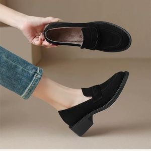 软皮手工小皮鞋2025新款秋冬复古单鞋羊反绒一脚蹬英伦乐福鞋女鞋
