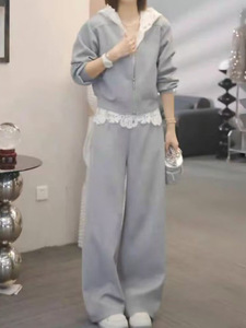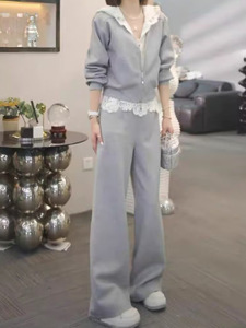2025超火春装套装女韩系时尚减龄假两件卫衣阔腿裤秋季穿搭两件套