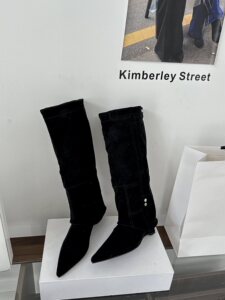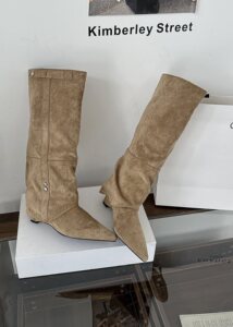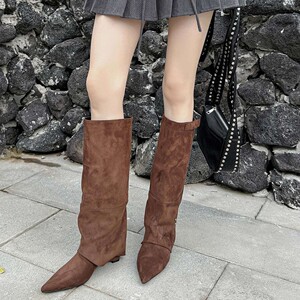 欧美风尖头绒面长筒裤管显瘦粗跟长靴