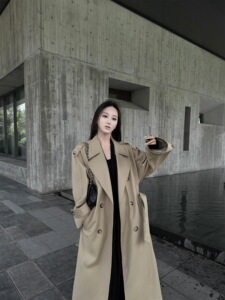5werkwen 智贤风衣 双排扣大衣女秋冬中长款气质翻领系带春秋外套