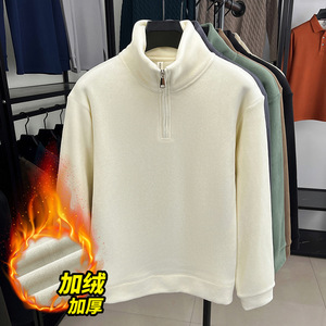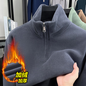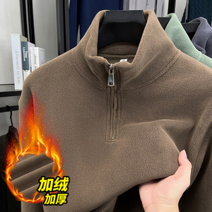 一体绒双面奥粒绒立领半拉链卫衣男秋冬加绒加厚保暖时尚百搭外套