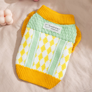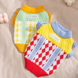 秋冬季猫咪无毛猫菠萝针织撞色菱格毛衣狗狗小飞袖针织衫宠物衣服