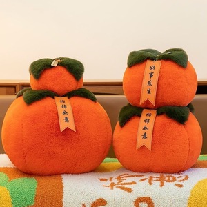 新款仿真柿子抱枕毛绒玩具柿柿如意摆件靠枕女生新年礼物娃娃批发