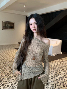 设计感小众不规则露肩印花衬衫女秋季新款高级感洋气减龄百搭上衣