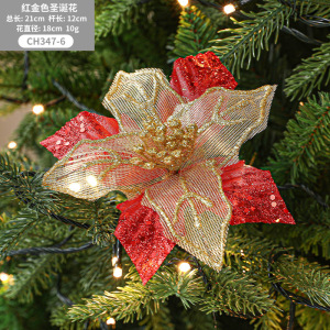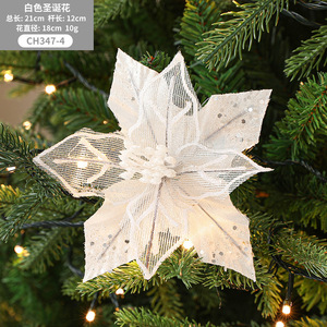 亚马逊新款仿真闪粉亮片金色白色网纱叶子手工圣诞花装饰圣诞花环