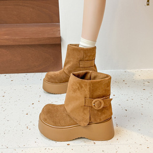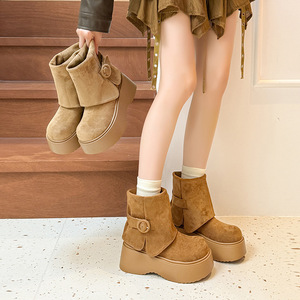 厚底增高勃肯鞋短靴子女款2025新款秋冬季配裙子小个子显瘦马丁靴