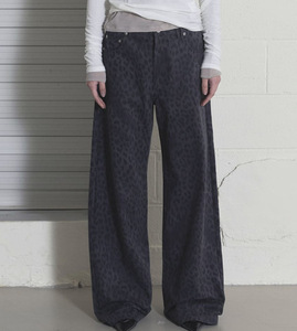 现货Jennie同款ORDE*韩国设计师潮牌宽松美式豹纹阔腿牛仔裤女休