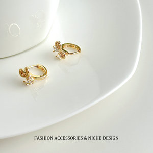 ins风镂空蕾丝镶锆石蝴蝶耳扣小巧精致轻奢小众独特时尚百搭耳圈