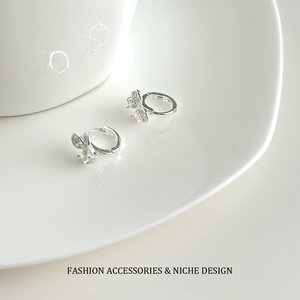 银色镂空蕾丝镶锆石蝴蝶耳扣