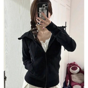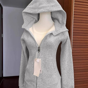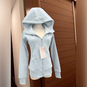 秋天修身外套女款春秋蓝色卫衣女2025新款收腰正肩韩系早秋季穿搭