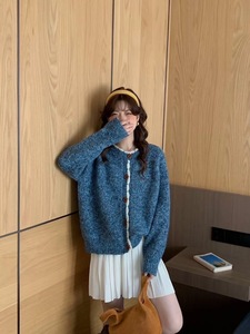 秋冬软糯宽松慵懒风拼色针织开衫外穿高级感森系洋气休闲毛衣外套