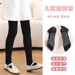厂批发棉质中厚纯色光板儿童舞蹈袜脚底防滑小脚丫白色儿童连裤袜