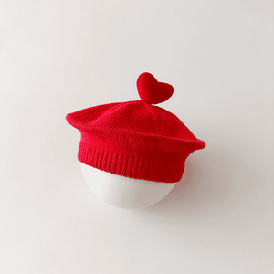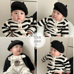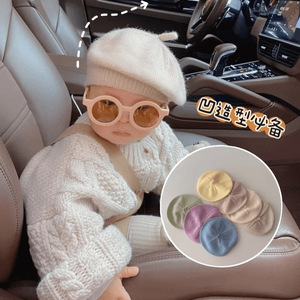 ins日韩儿童针织帽贝雷帽子 凹造型男女童画家帽纯色洋气秋冬