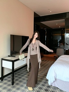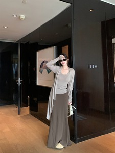 温柔风套装薄款开衫外套内搭背心女装秋季鱼尾裙半身裙长裙三件套