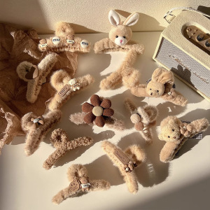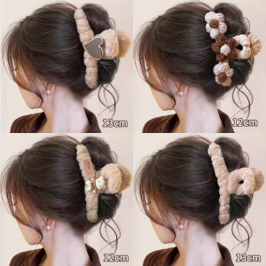 毛绒抓夹女小熊秋冬新款发夹后脑勺鲨鱼夹发抓高级感夹子头饰发饰