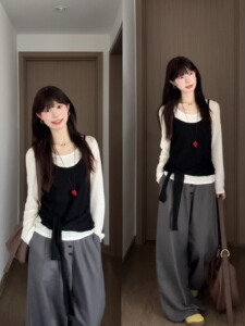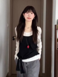 韩系慵懒松弛感上衣早秋穿搭长袖t恤女叠穿背心高级感巨好看套装