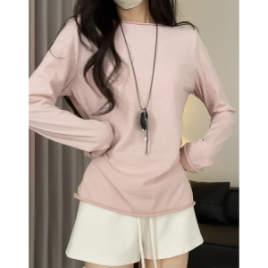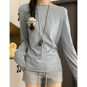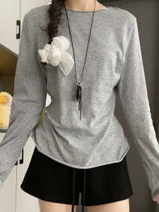 H191圆领防晒罩衫女夏季外穿百搭宽松显瘦设计感卷边T恤长袖上衣
