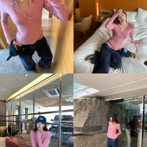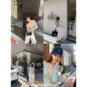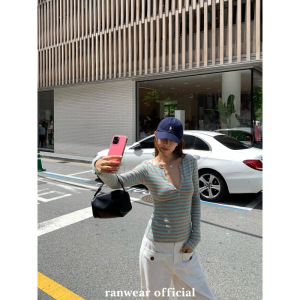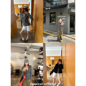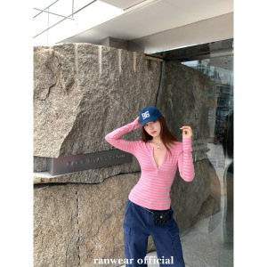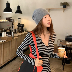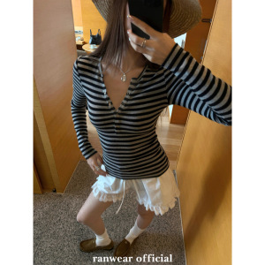 绵羊毛拉架小众百搭亨利打底衫撞色条纹修身针织T恤