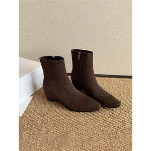 羊皮版~复古极简瘦瘦靴女气质方头内短靴侧拉链显瘦弹力靴子