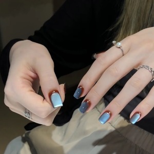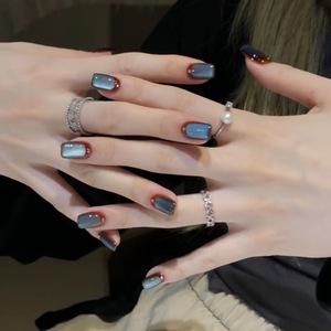 冰葡萄蓝色猫眼美甲显白2025年新款穿戴甲纯手工高级感短款