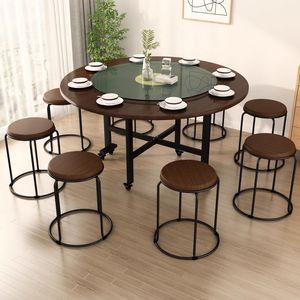 折叠餐桌客厅家用圆桌多功能可移动折叠餐桌小户型带轮吃饭折叠桌