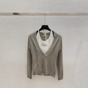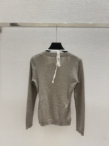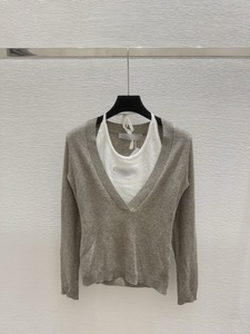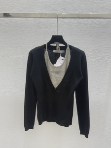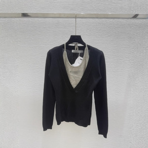 深圳南油正确高版本CD家25早秋新款V领长袖针织衫上衣挂脖假两件