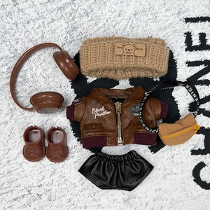 一二三代布布玩偶复古夹克裤子发带套装labubu娃衣毛绒公仔换装包