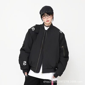 美式街头重磅刺绣字母立领飞行夹克男女国潮牌情侣款小众设计外套