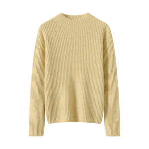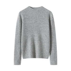 无缝一体100纯羊毛衫女式半高领套头毛衣秋冬新款点点纱坑条打底