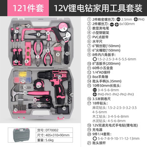 Hispec家用工具套装粉色扳手钳子榔头电动螺丝刀工具箱维修组合套