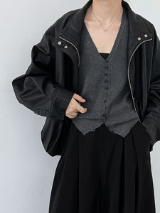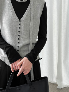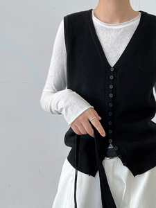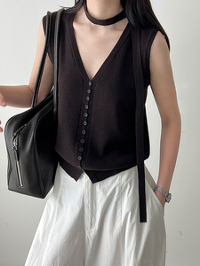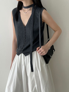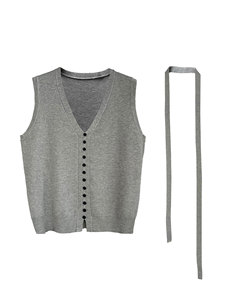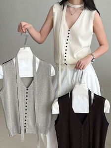 鹿西 韩系V领羊毛针织背心马甲配领带女25秋季新款开衫上衣ss783