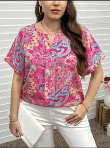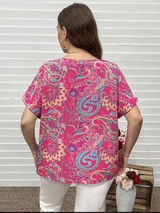 2025新款亚马逊欧美跨境印花v领短袖休闲女装T恤上衣女士波西米亚