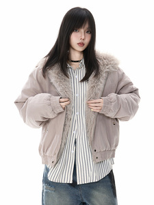 冬季美式棉服中性外套夹棉帆布水洗男女情侣装厚毛领连帽中长棉衣