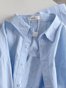 秋冬款蓝色棉衬衫女宽松显瘦百搭叠穿打底内搭衬衣长袖上衣