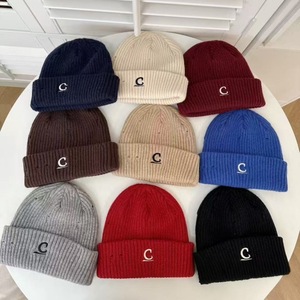 网红新C字母毛线帽子女秋冬韩版ins潮时尚保暖百搭学生针织帽冷帽