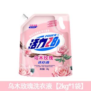 活力28乌木玫瑰洗衣液2公斤/袋装补充装去渍去污家用宿舍开学用品