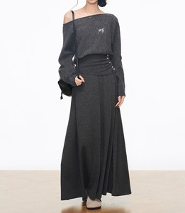 WESTAYONE斜肩收腰毛衣女女半身裙慵懒风套装韩系氛围感