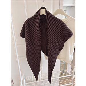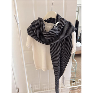 100%纯羊毛条纹披肩外搭女2025新款秋冬韩系三角针织叠穿气质坎肩