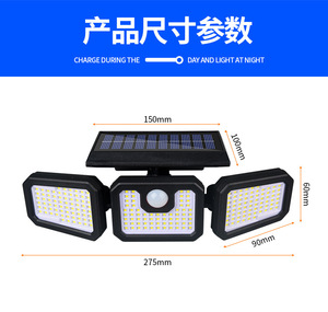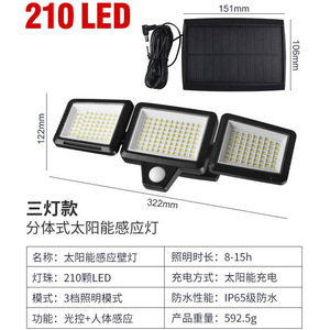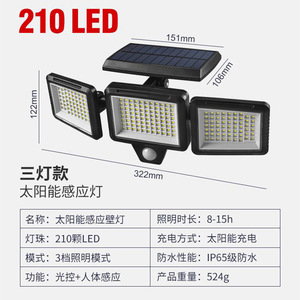 三头太阳能壁灯210LED