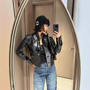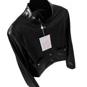 高品质高级亮黑小香风皮衣酷辣金属纽扣开衫短款外套皮衣女